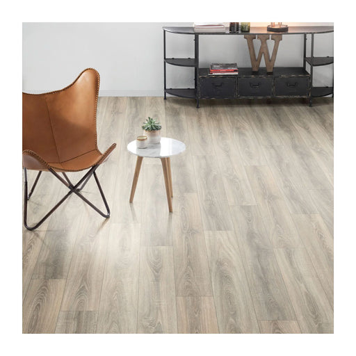 Elevate your space with Cisco Oak 8mm laminate flooring, designed for the discerning homeowner or business. This flooring features a pa...