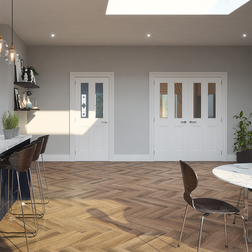 Indoors Boston Clear Glazed Primed Door, a perfect blend of contemporary elegance and classic charm that brightens up your living space with its cl...