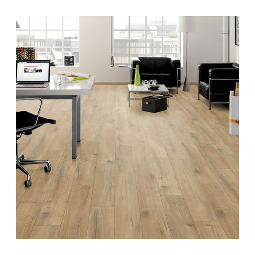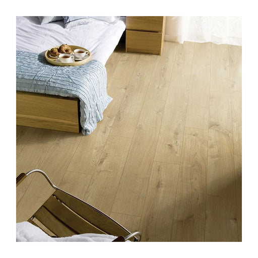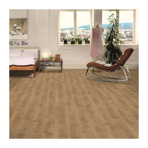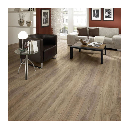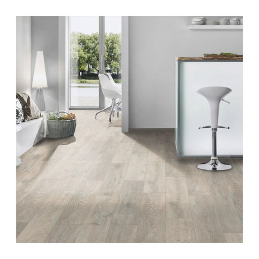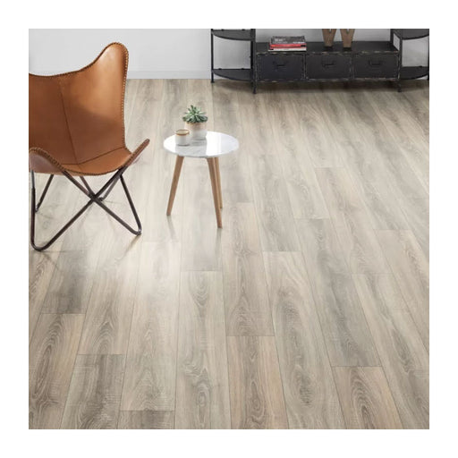Elevate your space with Cisco Oak 8mm laminate flooring, designed for the discerning homeowner or business. This flooring features a pa...