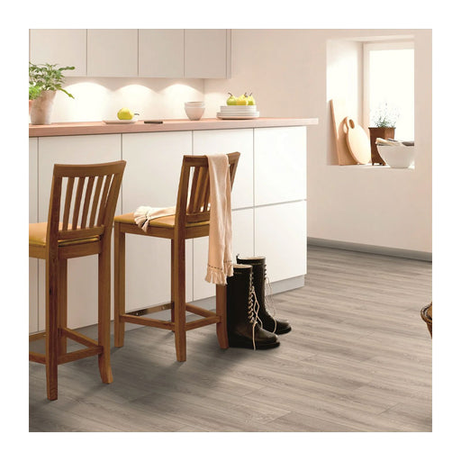 Elbe Grey Oak Plank is a contemporary 12mm laminate floor. It has a v-groove on all four sides, helping to give it that real wood aesthetic. The in...