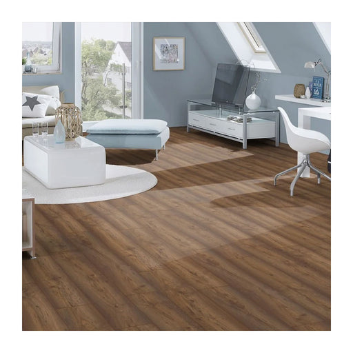 Immerse your space in the rich elegance of Habana Oak, a stunning 12mm laminate flooring solution that effortlessly captures the realis...