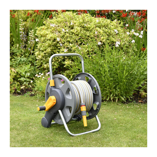 Hozelock 45m Reel 2-In-1 Plus 25M Hose & Fitting—a ready-assembled hose reel that comes complete with 25m of 12.5mm hose. This versatile reel i...