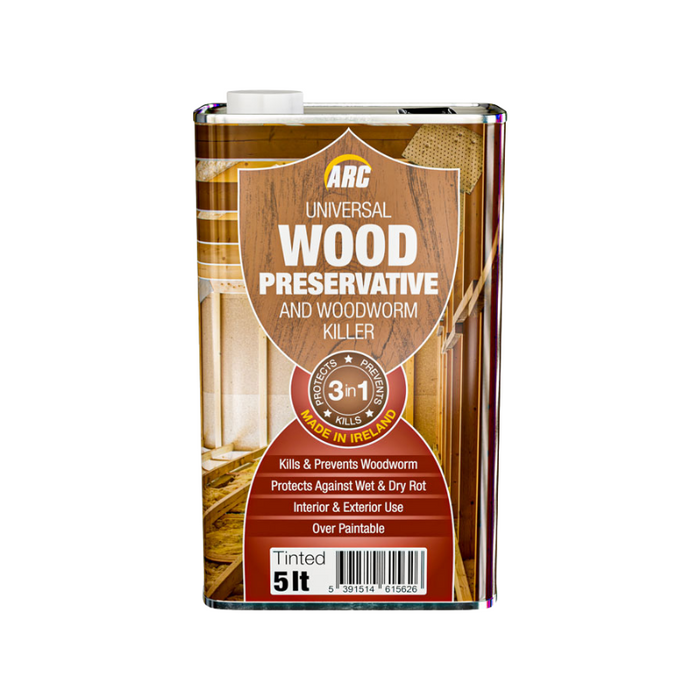 Arc Universal Wood Preservative & Woodworm Killer kills & prevents woodworm and protects against wet & dry rot. Suitable for interior & exterior use. This ready-to-use powerhouse combines fungicide and insecticide properties, employing microemulsion technology to penetrate like a solvent. Elevate your wood protection game with a product designed for both preventative and curative treatments against wood-boring beetles, termites, and wood-rotting fungi. Penetrates wood like a solvent, ensuring thorough protection against wood-boring beetles, termites, and fungi. From interior elegance to exterior durability, safeguard both hard and soft wood with one versatile solution.