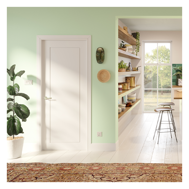 Indoors Atlanta Single Panel Moulded Door: a blend of style and value. With a sleek white finish, it adds modern flair to any space. The minimalist single panel design and clean lines make it perfect for new builds or renovations. Crafted with a robust 44mm thickness and an impeccable finish, the door radiates durability. The smooth white base allows for easy color customisation.