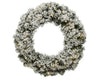 - Pre-lit battery operated snowy wreath with 50 warm white LEDs