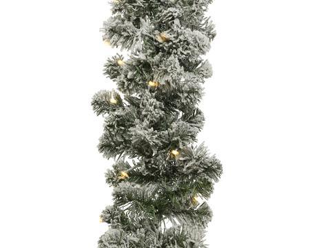 - Pre-lit battery operated snowy garland with 50 warm white LEDs