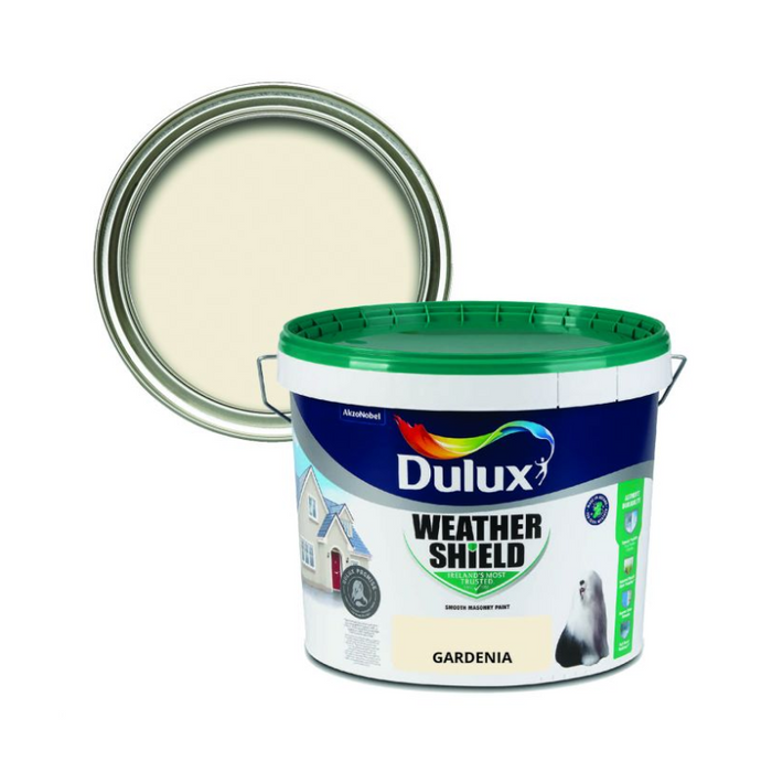 Dulux Weathershield 10L Gardenia, the pinnacle of smooth exterior masonry paint crafted in Ireland to safeguard homes against our unique weather conditions. With its ultimate durability formula and superior flexibility, it prevents cracking and flaking, ensuring long-lasting protection for your home's exterior surfaces.