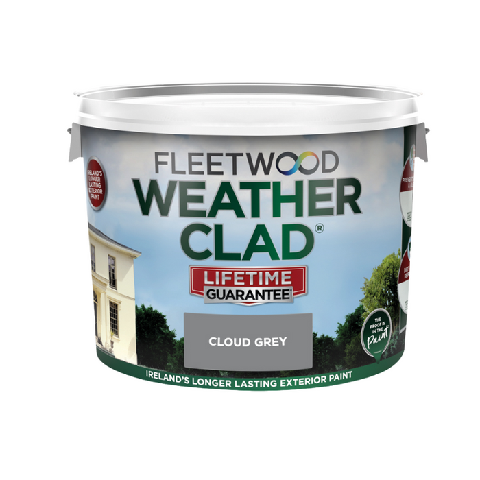 Fleetwood 10L Weatherclad Cloud Grey, the epitome of long-lasting exterior paint designed for the rugged Irish climate. Crafted in Ireland, this premium paint offers built-in mould resistance and can endure up to 18 years of protection. With exceptional coverage and super adhesion, it boasts UV and fade resistance to maintain its vibrant color over time. Its matt finish adds a touch of elegance to your exterior surfaces, while its water-based formula ensures easy application and environmental friendliness.