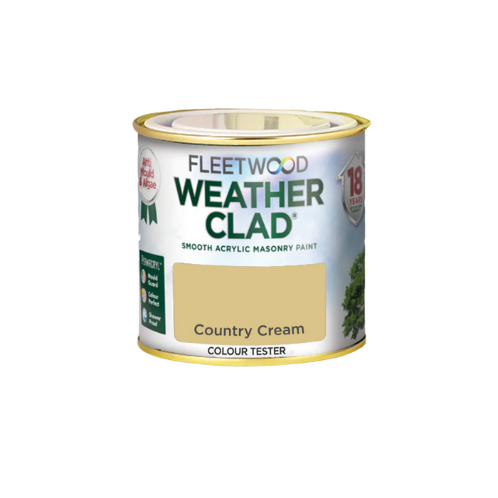 Fleetwood 10L Weatherclad Country Cream, the epitome of long-lasting exterior paint designed for the rugged Irish climate. Crafted in Ireland, this premium paint offers built-in mould resistance and can endure up to 18 years of protection. With exceptional coverage and super adhesion, it boasts UV and fade resistance to maintain its vibrant color over time. Its matt finish adds a touch of elegance to your exterior surfaces, while its water-based formula ensures easy application and environmental friendliness.