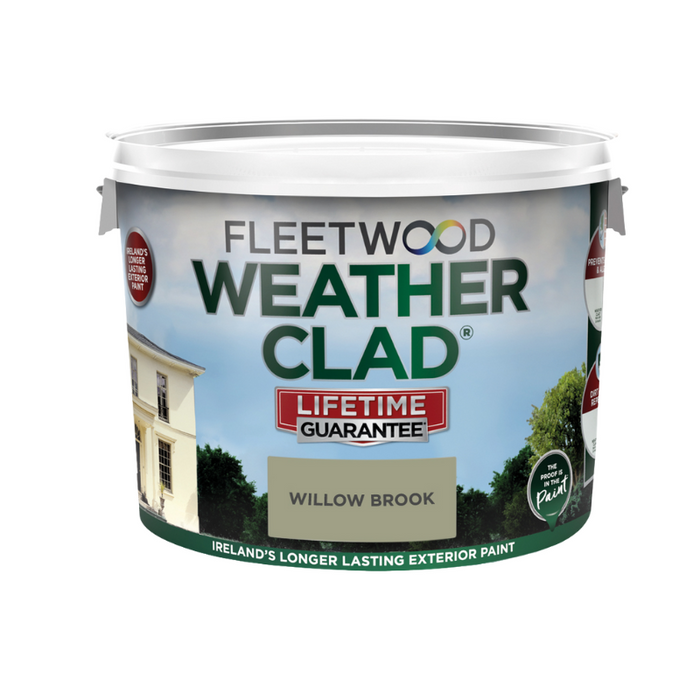 Fleetwood 10L Weatherclad Willow Brook, the epitome of long-lasting exterior paint designed for the rugged Irish climate. Crafted in Ireland, this premium paint offers built-in mould resistance and can endure up to 18 years of protection. With exceptional coverage and super adhesion, it boasts UV and fade resistance to maintain its vibrant color over time. Its matt finish adds a touch of elegance to your exterior surfaces, while its water-based formula ensures easy application and environmental friendliness.