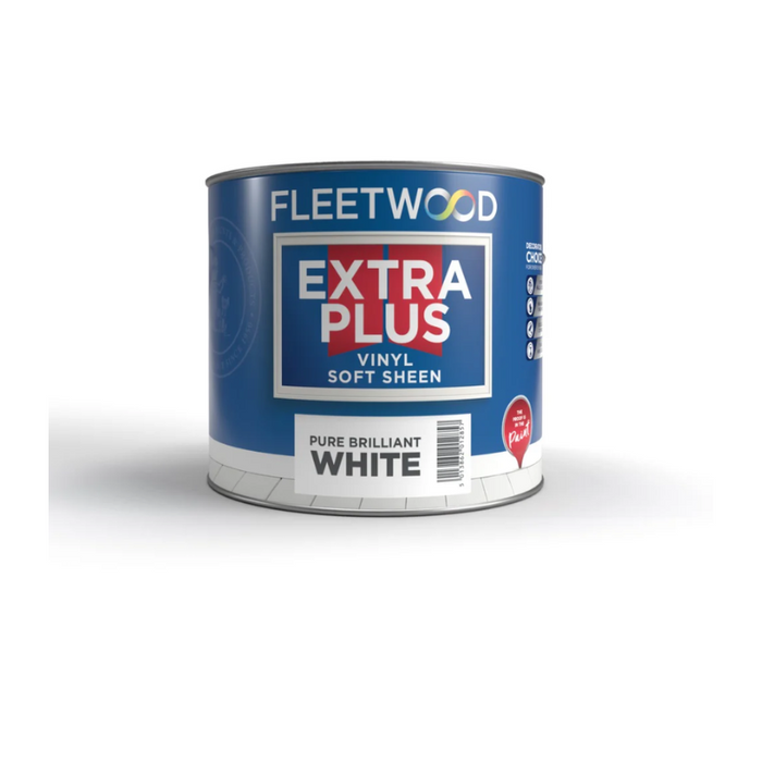 An excellent interior emulsion paint, the Fleetwood Extra Plus Soft Sheen White Paint is ideal for heavy duty areas where a washable finish is needed. The Fleetwood Extra Plus Soft Sheen White Paint is perfect for painting kitchens and bathrooms. The Fleetwood Extra Plus Soft Sheen White Paint provides a high opacity with a mid-sheen finish. As an estimate, the Fleetwood Extra Plus Soft Sheen White Paint provides a coverage rate of up to 12m²/litre. Touch dry in 30 minutes and can be ready for a re-coat within 2-4 hours.