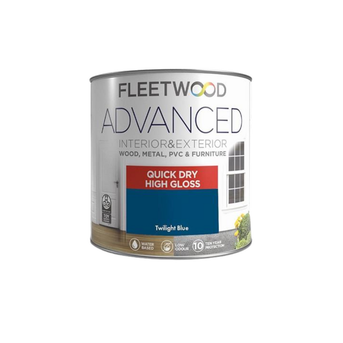 Fleetwood Advanced Quick Drying Gloss Twilight Blue is a high quality water based interior/exterior paint that is specially formulated to give all the application and appearance characteristics of a traditional trim paint with the added advantage of being quick drying and of low odour during application. A gloss, high sheen brilliant blue finish.