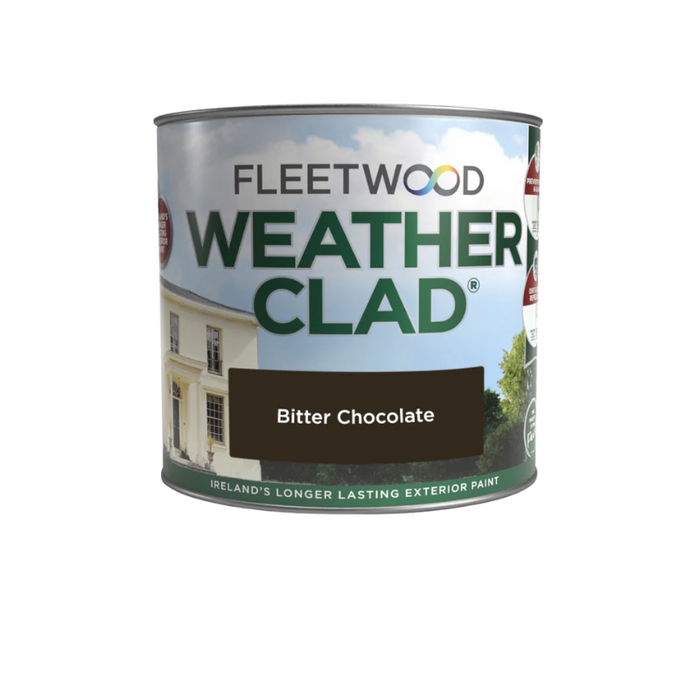 Fleetwood Weatherclad Bitter Chocolate, the epitome of long-lasting exterior paint designed for the rugged Irish climate. Crafted in Ireland, this premium paint offers built-in mould resistance and can endure up to 18 years of protection. With exceptional coverage and super adhesion, it boasts UV and fade resistance to maintain its vibrant colour over time. Its matt finish adds a touch of elegance to your exterior surfaces, while its water-based formula ensures easy application and environmental friendliness.