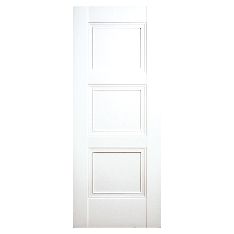 Indoors Franklin Three Panel Primed Door: a timeless classic with an elegant three-panel design. Its smooth flat panels, adorned with decorative mouldings, imbue the door with unique style and character. The fusion of elegance and style makes it versatile for both traditional and modern homes worldwide. Crafted with a sturdy 44mm thickness, this door stands the test of time.