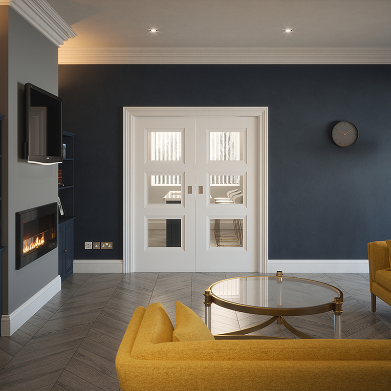 - Elegant three-panel classic design with smooth flat panels and decorative mouldings, exuding style and character.