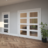 Indoors Kirkland Clear Glazed Primed Door, an elegant shaker style door that effortlessly combines simplicity with sophistication. This door features 4 horizontal panels, adding a touch of modern charm to your living space. Its primed white finish provides a clean and refined appearance, making it a versatile addition to contemporary projects. Crafted with meticulous attention to detail, the door is guaranteed not to shrink, warp, or twist, ensuring durability and stability that will stand the test of time. The solid timber core offers strength and reliability, making it a reliable choice for your interior needs. Primed in a neutral white color, it serves as a perfect canvas for you to express your creativity and finish it in any color of your choice, enabling you to create a truly unique and personalized look.