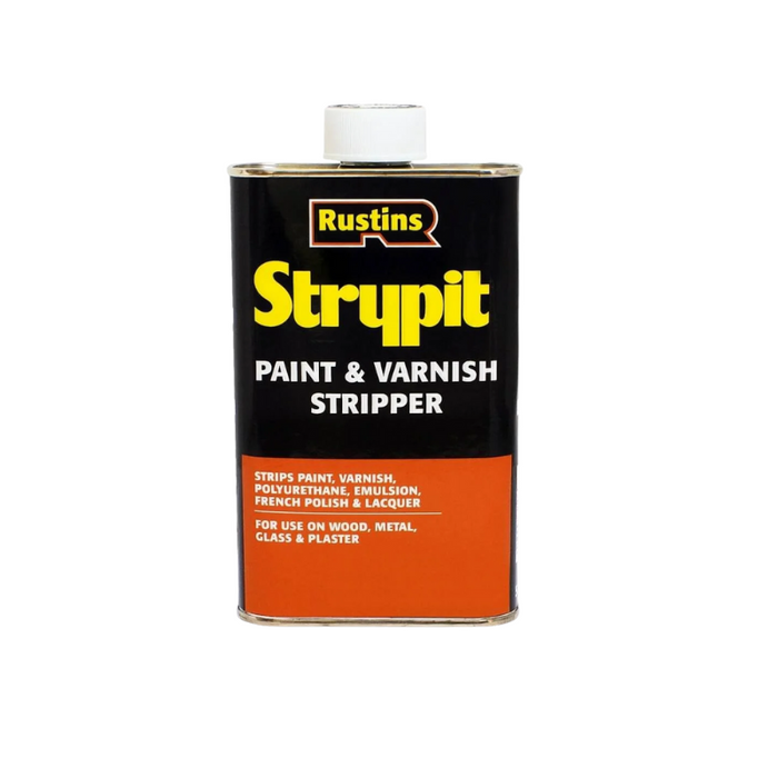 Rustins Strypit Paint and Varnish Stripper is a non-caustic dichloromethane free gel for removing paint. This product removes multiple coats of paint and varnish from wood, glass, stone and masonry surfaces. Strypit works best when applied liberally and allowed to penetrate the layers of built up paint. The gel consistency permits effective use on vertical surfaces. Rustins Strypit can remove paint, varnish, cellulose, polyurethane, emulsion, French Polish, lacquer and textured finishes from wood, metal, glass or plaster.