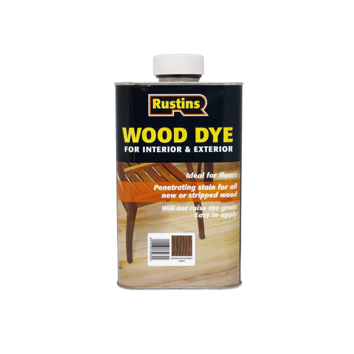 Rustin's Wood Dye For Interior & Exterior 250ml in a variety of colours. Quick drying penetrating stain for all new or stripped wood. Easy to apply and will not raise the grain. For use on bare wood prior to finishing with any of Rustins wood finishes. Suitable for interior and exterior use. Achieve the perfect finish for your woodworking projects with the versatility and quality of Rustin’s Wood Dye.
